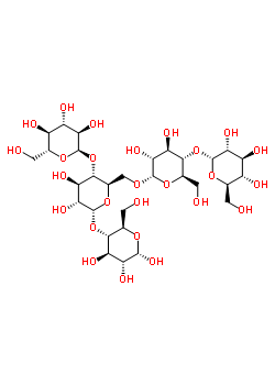 支鏈淀粉白色粉狀,又稱膠淀粉。支鏈淀粉是以優質土豆或糯玉米為原料生產的一種純天然支鏈淀粉。與普通淀粉相比具有較高的膨脹性、粘滯性和透明度,其膨脹性是普通淀粉的2·7倍。普通淀粉溶液很不穩定,貯存時逐漸變成混濁,膠粘性降低,最后出現白色結晶沉淀。支鏈淀粉是一個具有樹枝形分支結構的多糖。相對分子質量較大,一般由1000-300,000個左右葡萄糖單位組成,分子量約為100萬,有些可達600萬。D-吡喃葡萄糖單位通過α-1,4-苷鍵連接成一直鏈,此直鏈上又可通過α-1,6-苷鍵形成側鏈,在側鏈上又會出現另一個分支側鏈。主鏈中每隔6-9個葡萄糖殘基就有一個分支,每一個支鏈平均含有約15-18個葡萄糖殘基,平均每24-30個葡萄糖殘基中就有一個非還原尾基。因此支鏈淀粉的結構為高支